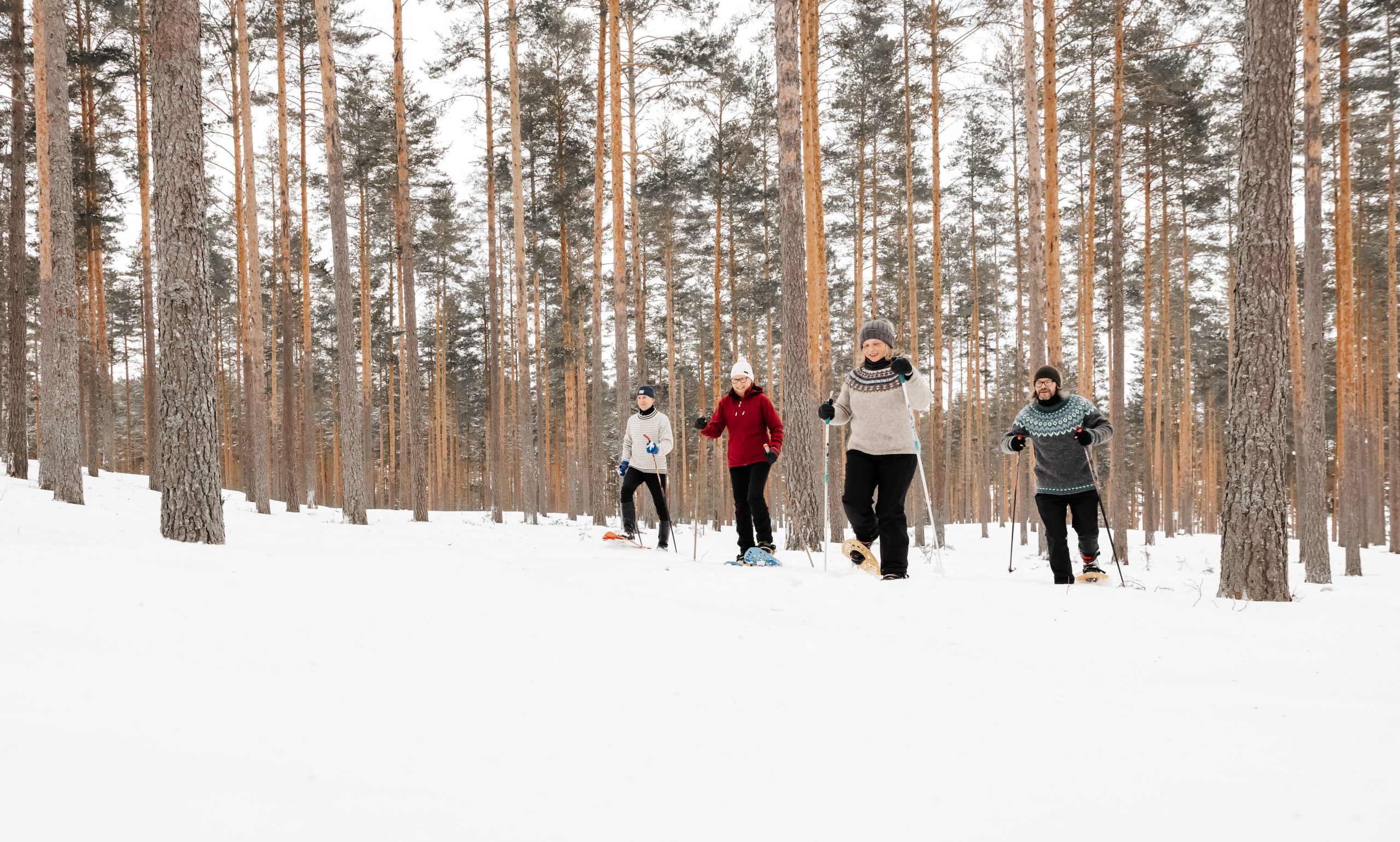 Lumikenkäily sopii kaikenikäisille ja -tasoisille liikkujille, ja sen avulla pääset helposti kulkemaan myös syvässä lumessa. Voit lähteä omatoimiselle retkelle metsän siimekseen tai kulkea valmiita polkuja pitkin omaan tahtiin.