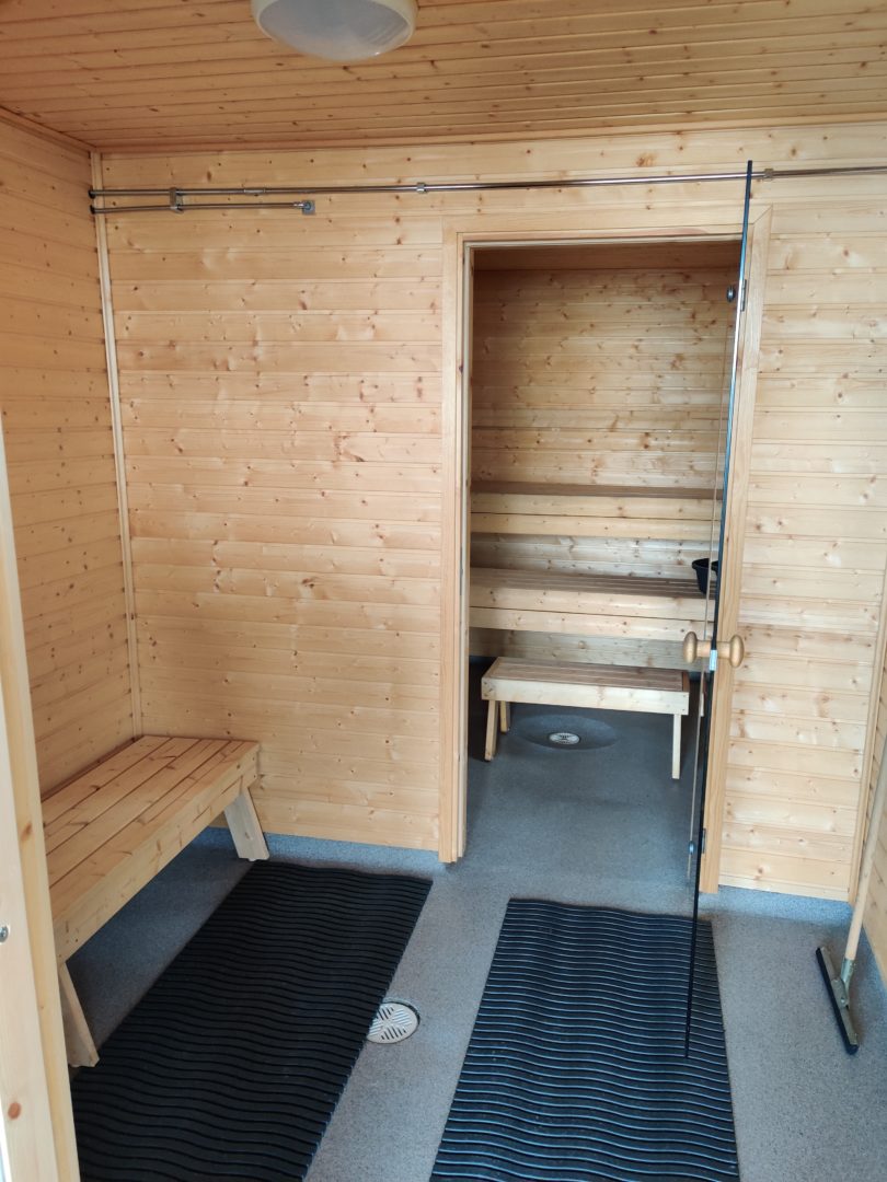 Sauna B on perinteinen puulämmitteinen sauna, jossa on pesuhuone, pukuhuone ja kuisti. Saunan hinta on 22 € / h.