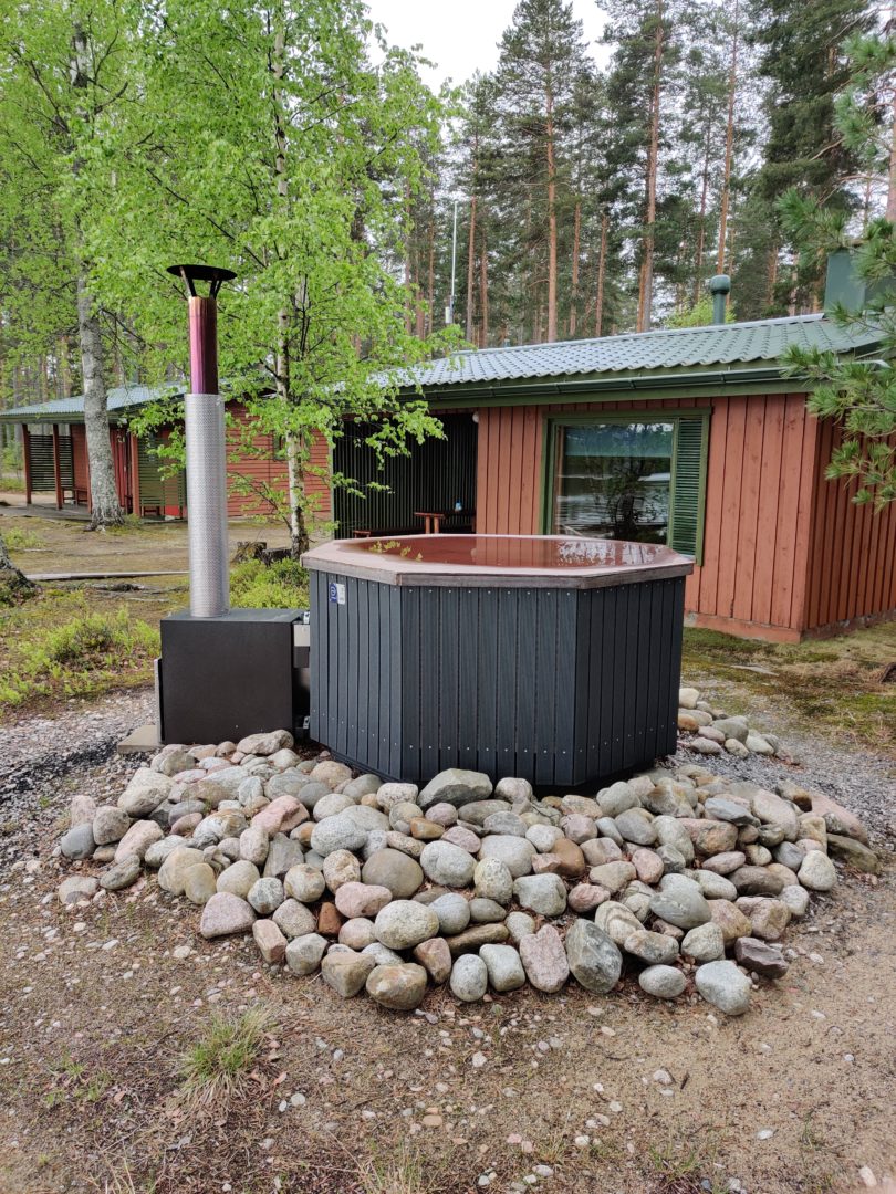 Sauna A on sähkölämmitteinen ja hyvin varusteltu kokonaisuus, johon kuuluu pesuhuone, wc, takkahuone sekä terassi. Halutessasi voit vuokrata lisäksi kylpytynnyrin. Saunavuokra alkaa 26 € / h ja kylpytynnyrin kanssa alkaen 130 € / 2h. Kylpytynnyri tulee varata vähintään 48 tuntia etukäteen.